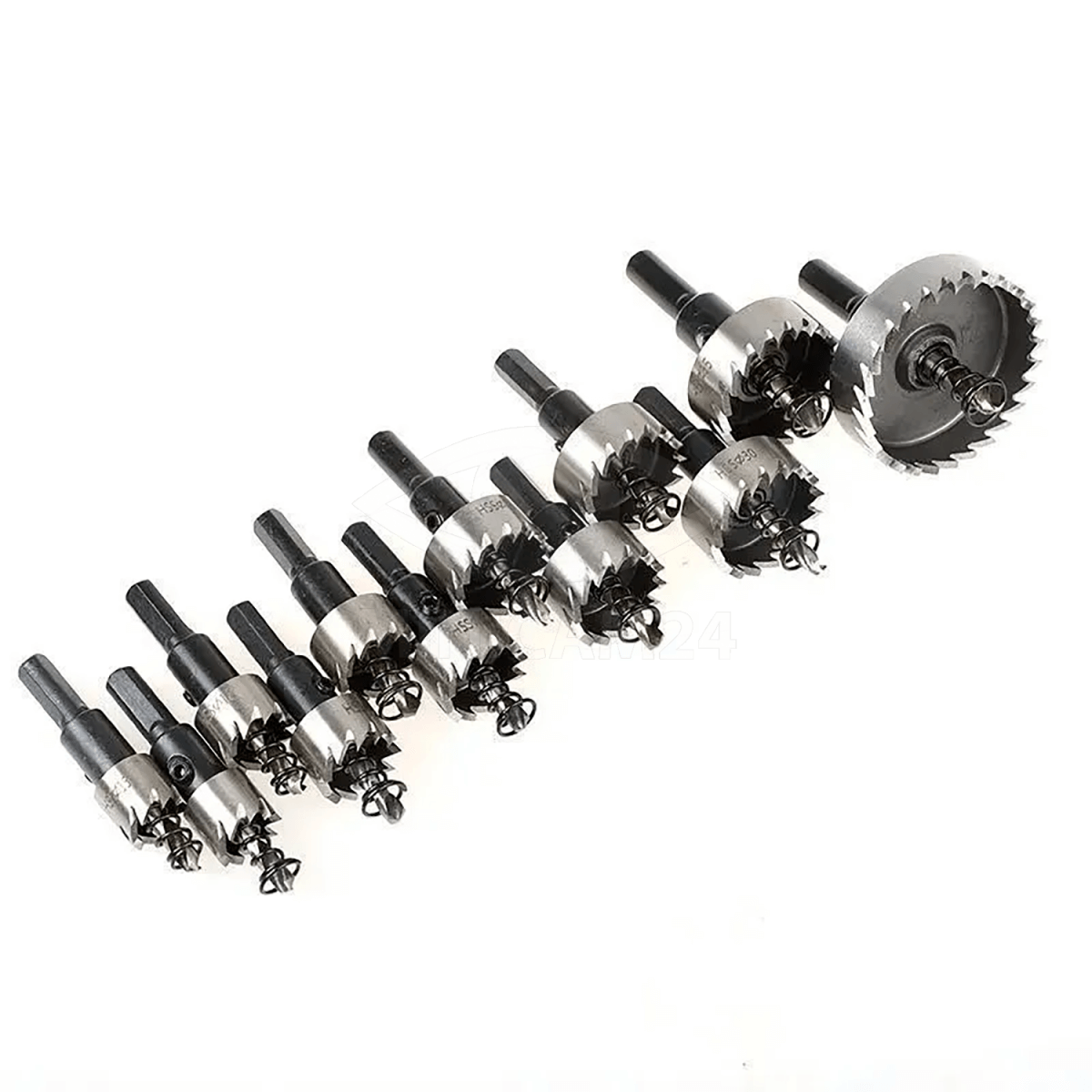 Набор коронок с центрирующим сверлом выполнен из высокопрочной инструментальной стали и удовлетворит все потребности в нарезке отверстий. Идеально подходит для установки замков, ручек дверей и шкафов, а также для сверления отверстий большого диаметра. Резка в считанные секунды: нержавеющая сталь, медь, латунь, алюминий, стеклопластик, и другие слоистые материалы.